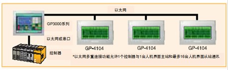 GP-4104標(biāo)配1個(gè)以太網(wǎng)接口,不但可以輕松地實(shí)現(xiàn)與控制器的以太網(wǎng)通訊,還可以為大型機(jī)械或生產(chǎn)車間的用戶提供低成本的子顯示終端,用戶僅需要1根以太網(wǎng)線就可以輕松地將GP4104接入系統(tǒng)。還可以與Pro-face的GP3000系列以太網(wǎng)機(jī)型配合在一起,實(shí)現(xiàn)以太網(wǎng)的多重連接。