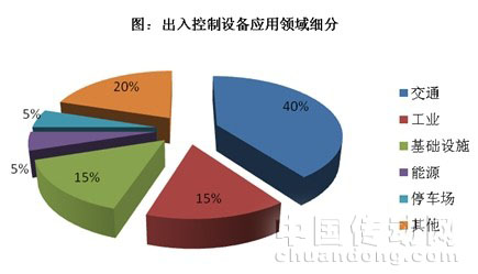 出入口控制設(shè)備的應(yīng)用主要集中于工業(yè)、交通及基礎(chǔ)設(shè)施領(lǐng)域;民用相對較少,僅僅處于起步階段。根據(jù)Frost&Sullivan公司的研究,交通領(lǐng)域為2009年出入控制產(chǎn)品需求最大的行業(yè),需求量超過整體高端市場的40%,其次是工業(yè)領(lǐng)域和基礎(chǔ)設(shè)施建設(shè)各占15%左右。