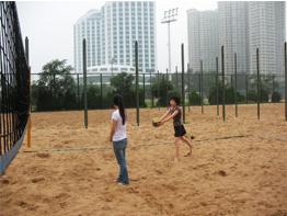 秦皇島體育基地是國家級體育培訓(xùn)基地,設(shè)施齊全,內(nèi)設(shè)有專業(yè)沙灘排球訓(xùn)練場地,從海邊消暑歸來的同事們很快又投入到沙灘排球的混戰(zhàn)中,幾個回合下來,互相協(xié)作打出不少精彩的配合。