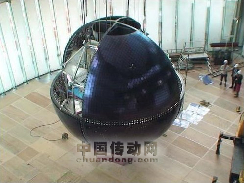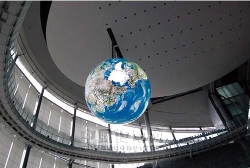 球體懸離地面18米,鋁制的球面上鑲嵌有10,362枚長(zhǎng)寬各96毫米的OLED面板。為紀(jì)念科學(xué)未來(lái)館建館10周年,三菱電機(jī)運(yùn)用其更新升級(jí)的OLED技術(shù)創(chuàng)造了這個(gè)球體,以取代此前由發(fā)光二極管(LED)構(gòu)成的球體顯示器。新球體顯示器將從氣象衛(wèi)星獲取并展示地球的大氣云圖以及其它地球景象。屏幕影像的分辨率將高達(dá)1000萬(wàn)像素,大約是之前LED顯示器的10倍。
