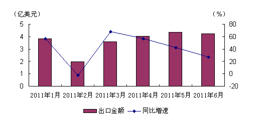 據(jù)海關(guān)統(tǒng)計(jì)數(shù)據(jù)顯示,2011年1~6月,我國鋼鐵或銅制標(biāo)準(zhǔn)緊固件出口額為22.02億美元,同比增長41.5%,出口量為125.2萬噸,同比增長22.2%,出口平均價(jià)格為1761美元/噸,同比增長15.8%。6月當(dāng)月,我國鋼鐵或銅制標(biāo)準(zhǔn)緊固件出口額為4.25億美元,同比增長27.6%,出口量為23.8萬噸,同比增長12.0%,出口平均價(jià)格為1788美元/噸,同比增長13.9%。