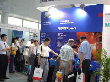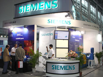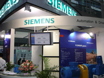 西門子A&D集團機械傳動部在本次博覽會展示了在金屬加工領域的最新產品和技術, 其中最為引人注目的是一臺成套的驅動系統(tǒng),整套驅動系統(tǒng)由減速機、液力偶合器、電機、底座四大部分組成。減速機為剛加入A&D集團的世界著名品牌Flender減速機, 在這臺減速機上通過超越離合器新增 加了輔助傳動, 其功能主要用于維修等場合開啟輔助傳動使系統(tǒng)進行低速運轉。該套驅動系統(tǒng)實現了西門子A&D集團致力于為客戶提供完整解決方案的承諾。另一臺剖開型標準減速機讓參觀者通過對齒輪的直接觀察,對Flender減速機齒輪加工的DIN5級精度表示了信服和稱贊。此外,展臺一側還展出了標準傳動部的MM440變頻器和高效變頻電機,也是引起了參觀者的強烈關注。