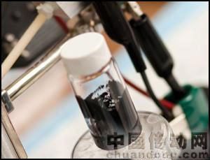 該材料呈現(xiàn)黝黑色,外觀與原油相似。在普通充電電池中,鐵原子通過電解液或電解質(zhì)粉在兩個固體電極中運動,使電子流入與兩電極相連的電線中產(chǎn)生電流。而蔣業(yè)明制造的“劍橋原油”電池,電極是由微小的鋰元素組成,與液體電解液混合在一起,成為類似泥漿狀的流體混合物。電池中同時存在兩股帶著正負電荷的“泥漿”,由具滲透性的薄膜隔離開來。兩股“泥漿”流動,在薄膜上相互交換鋰離子,產(chǎn)生電流。要對電池充電,可外接一個電源使這些離子通過薄膜重新回到另外一側(cè)。