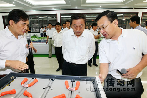 8月20日,北京市委常委趙鳳桐帶領(lǐng)北京市發(fā)改委、北京市科委、北京市財(cái)政局、北京市規(guī)劃局、北京市交通局、北京市公交公司、首都機(jī)場等單位領(lǐng)導(dǎo)30余人,在北京市電力公司總經(jīng)理朱長林、副總經(jīng)理李百順的陪同下,蒞臨薛家島電動汽車智能充換儲放一體化示范工程考察交流。集團(tuán)公司總裁李富生,山東電力集團(tuán)公司總經(jīng)理李同智、副總經(jīng)理錢平,青島供電公司總經(jīng)理王金行接待了趙鳳桐常委一行。