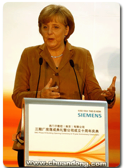 慶典儀式最后,德國總理默克爾發(fā)表了講話,她代表整個代表團,特別代表德國的議會代表對SNC三期廠房落成及公司成立十周年表示了特別祝賀,她認為這次慶典非常明顯的表明,中國市場具有多么大的活力,而且在數(shù)控和自動化領域里面這個市場有多大。SNC不但是為中國市場生產,而且是為整個市場世界進行生產,在當今一個全球化的世界里面,各個國家相互密切的聯(lián)系在一起,如果在這里生產的產品不能有效進行的話,那么在世界其他各地可能也會受到影響?,F(xiàn)在所有的計算機技術都融入到了機床設計和制造領域,這些知識所有人都可以共同的使用,這也說明,西門子和中國的伙伴,在中國不僅是共同的生產,也在進行共同的研發(fā),中德兩個國家實際上都共同受益于在這個市場上共同的努力。這次來到南京,南京以及江蘇省的快速發(fā)展給默克樂總理留下了很深的印象,在這個慶典之上,體現(xiàn)出來的不僅僅是兩個中德企業(yè)的合作,也是在整個中國所進行的中德合作的一個方面。她非常地希望在中國的眾多德國企業(yè)在未來的時日里面能夠成為中國可靠的合作伙伴,同時也希望中國能更好的發(fā)展,江蘇省在過去這些時日里面,把很多重點放在生產制造上,今后將把很多的重點放在物流上,這對本次她所帶領的代表團來說,也是一個很好的信號,她幽默地說,德國的物流企業(yè)有非常好的資質和能力,希望能夠和他們進行更多的合作。稍后,默克爾總理和來賓共同參觀了三期廠房的生產設備及產品。