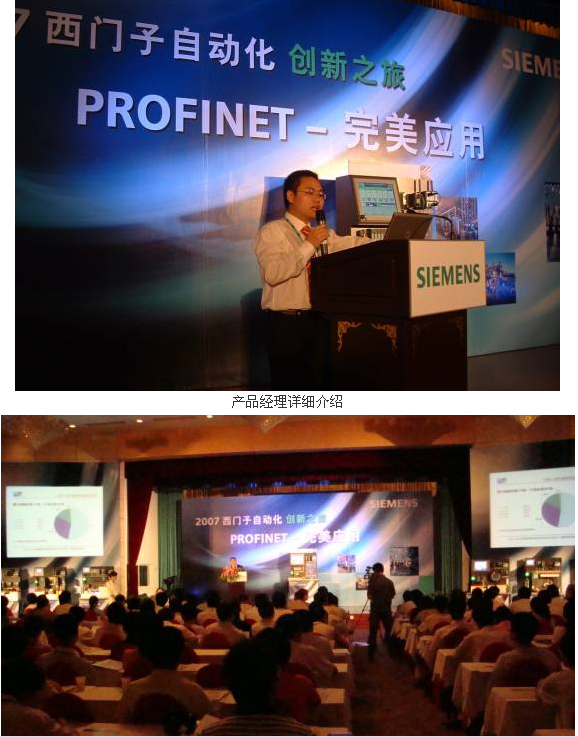 會議吸引了來自北京及周邊省市各個行業(yè)的客戶多達(dá)200余人,會場內(nèi)座無虛席,場面熱烈。西門子(中國)有限公司自動化與驅(qū)動集團(tuán)自動化系統(tǒng)部總經(jīng)理斐德思先生為活動揭幕并致開幕詞。隨著幕布拉開,從德國進(jìn)口的迷你工廠模型設(shè)備展示在來賓面前。之后,斐德思先生為大會作了精彩的開幕詞《西門子——創(chuàng)新成就未來》,使客戶們對西門子產(chǎn)品的創(chuàng)新性有了嶄新的理解。機械工業(yè)儀器儀表綜合技術(shù)經(jīng)濟(jì)研究所副所長歐陽勁松先生在大會上作了題為《PROFINET在中國的發(fā)展趨勢》的演講。來自清華大學(xué)自控系的教授陽憲惠作了題為《自動化網(wǎng)絡(luò)通訊的發(fā)展前景和方向》的演講,系統(tǒng)地闡述了工業(yè)通訊網(wǎng)絡(luò)的基礎(chǔ)理論和應(yīng)用前景。