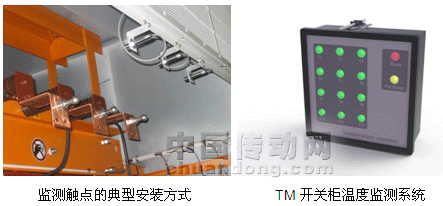 TM開(kāi)關(guān)柜監(jiān)測(cè)系統(tǒng)通過(guò)在線式紅外測(cè)溫儀CS進(jìn)行非接觸測(cè)量,從根本上解決了高壓開(kāi)關(guān)柜內(nèi)觸點(diǎn)溫度不易監(jiān)測(cè)的難題。TM溫度監(jiān)測(cè)系統(tǒng)能夠直觀的顯示多達(dá)12個(gè)點(diǎn)的運(yùn)行狀態(tài),并提供不同報(bào)警模式,為開(kāi)關(guān)柜的維修提供依據(jù),可有效防止火災(zāi)發(fā)生。