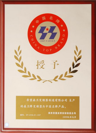 森蘭變頻器喜獲“中國名牌產(chǎn)品”稱號(hào)
