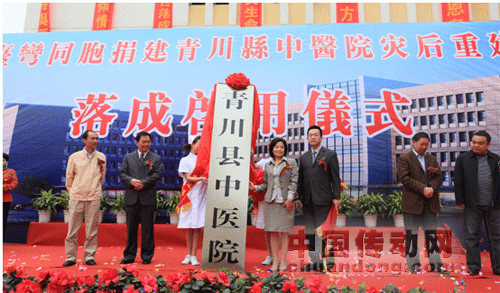 青川縣中醫(yī)院在抗震救災(zāi)期間發(fā)揮了重要的醫(yī)療救助作用,臺方捐資代表參與新院揭牌儀式