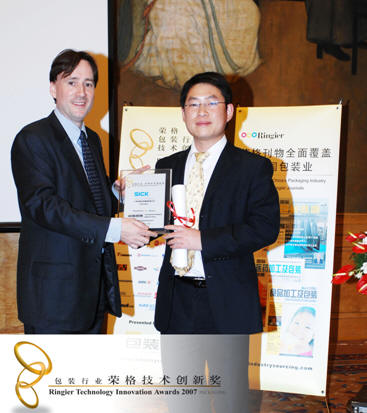 2007年11月19日,“2007包裝行業(yè)榮格技術(shù)創(chuàng)新獎(jiǎng)”頒獎(jiǎng)典禮在上海希爾頓酒店隆重舉行。該盛會(huì)由榮格公司《國(guó)際包裝商情》雜志全力主辦。創(chuàng)新獎(jiǎng)獲獎(jiǎng)企業(yè)經(jīng)過(guò)獨(dú)立的專家委員會(huì)的評(píng)審決議,依據(jù)公司的技術(shù)優(yōu)勢(shì)、產(chǎn)品特點(diǎn),以及對(duì)中國(guó)包裝行業(yè)的重大影響評(píng)選獲得。