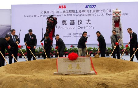 導(dǎo)語:中國上?!蝾I(lǐng)先的電力和自動(dòng)化技術(shù)集團(tuán)ABB今天在上海舉行上海ABB電機(jī)有限公司擴(kuò)建奠基儀式。