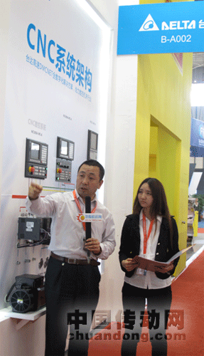 中達(dá)電通伺服&數(shù)控產(chǎn)品開(kāi)發(fā)處經(jīng)理李文建向媒體介紹臺(tái)達(dá)展臺(tái)