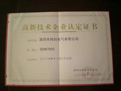 導(dǎo)語:偉創(chuàng)電氣取得了深圳政府批文、高新證書、高新牌匾。