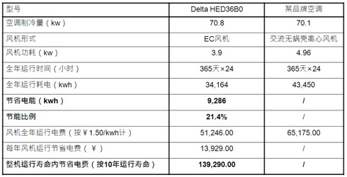 EC風(fēng)機與交流無蝸殼離心風(fēng)機能耗比較: