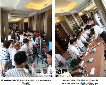 為了讓大家親身體驗Endress+Hauser產(chǎn)品,公司為此次路演精心準(zhǔn)備了涵蓋了流量、壓力、物位、水分析、溫度、罐區(qū)裝車等領(lǐng)域的近30臺儀表實物樣品、食品行業(yè)解決方案裝置、Liquilne液體分析平臺模型以及最新PromassX大口徑流量計模型。大家不僅親身體驗了E+H創(chuàng)新的儀表產(chǎn)品,而且就路演中提出的全新行業(yè)解決方案,與來自E+H的專家們進(jìn)行了熱烈的交流和討論。
