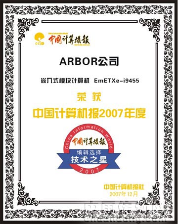 ARBOR EmETXe-i9455喜獲《中國計(jì)算機(jī)報(bào)》2007年編輯選擇獎-技術(shù)之星