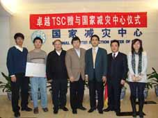 雙方相關(guān)領(lǐng)導(dǎo)卓越TSC公司銷(xiāo)售總監(jiān)安林杰和國(guó)家減災(zāi)中心總工程師、民政部救災(zāi)應(yīng)急指揮部辦公室李京副主任和民政部國(guó)家減災(zāi)中心閆志壯副主任共同出席了贈(zèng)與儀式活動(dòng)。