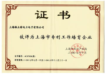 格立特公司獲“上海市專利工作培育企業(yè)”證書