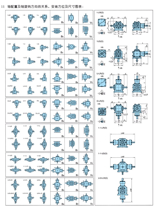 3、軸配置及軸旋轉(zhuǎn)方向的關(guān)系、安裝方位及尺寸圖表