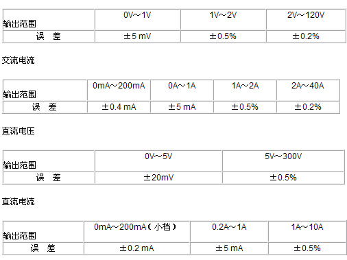 交流電流:大檔 0A~100A