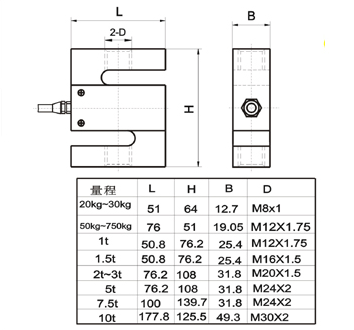 技術(shù)參數(shù)   額定載荷 20Kg~10t 輸入阻抗 365±5 Ω   靈敏度 2.0±0.4%(mV/V) 輸出阻抗 350±2 Ω 非線性 0.015% F.S 絕緣電阻 ≥5000 Ω 滯后 0.02% F.S 激勵(lì)電壓 9~12 VDC   重復(fù)度 0.01% F.S 溫度補(bǔ)嘗范圍 -10 ~ +40 ℃ 蠕變 0.02% F.S/30min 允許使用范圍 -20 ~ +55 ℃ 零點(diǎn)溫度影響 0.016% F.S/10℃ 安全過載范圍 150% F.S 靈敏度溫度影響 0.026% F.S/10℃ 極限過載范圍 200% F.S   零點(diǎn)輸出 ±1% F.S   接線方式 輸入:紅(+) 黑(-)             輸出:綠(+) 白(-)   結(jié)構(gòu)圖