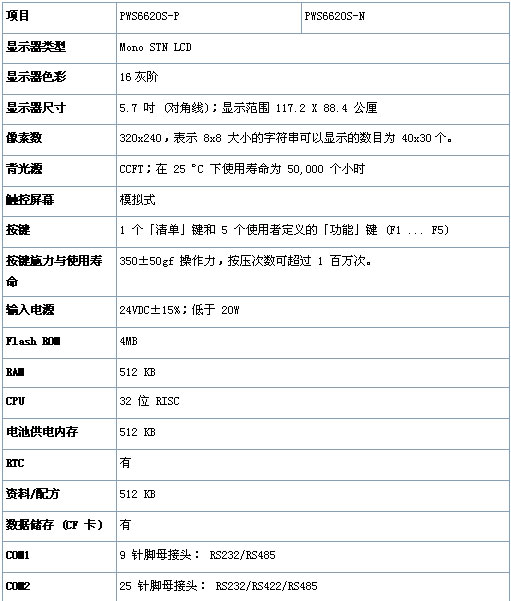 Plus版 的PWS 6620S具有 5.7 吋圖形觸控式顯示器,此顯示器為 16灰階,分辨率為 320x240像素。