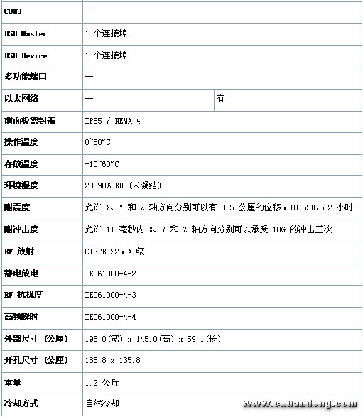 此外還有三個支持 RS232、RS422 和 RS485 的通訊連接端口, 以及 1 個 USB 主機連接端口和 1 個 USB 裝置連接端口。