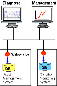 Webservice創(chuàng)建一個不依賴系統(tǒng)的通訊平臺,不同計算機上的應(yīng)用程序能集成在該平臺上,通過該平臺也能連接相應(yīng)的不同服務(wù)。例如:Asset Management系統(tǒng)的Webservice提供樹狀結(jié)構(gòu),OMINITREND的Webservice提供相應(yīng)的測量程序。在OMNITREND里就不要手動創(chuàng)建樹狀結(jié)構(gòu)了。Webservice是W3C協(xié)會的一個標(biāo)準(zhǔn),在全球范圍有很多知名的公司(Sun、Microsoft、IBM……)使用該標(biāo)準(zhǔn)。