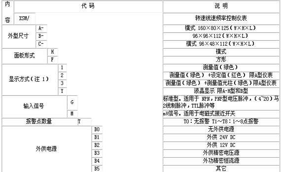 XSM 轉(zhuǎn)速 . 線速 . 頻率測量儀表以測量輸入信號的頻率為基礎(chǔ),配合表內(nèi)可設(shè)置的參數(shù),適用于轉(zhuǎn)速、線速、頻率、脈沖信號流量傳感器的瞬時流量等的測量、變換、顯示、傳送、記錄和控制。測量頻率范圍 0.1-25kHz ,顯示范圍- 19999-45000 。高于 25kHz 的儀表可加預(yù)分頻單元;基本誤差 ±0.01%F·S ,并具備調(diào)校和數(shù)字濾波功能;適用于各種接近開關(guān),磁電傳感器,旋轉(zhuǎn)編碼器等信號類型,測控周期: 0.5 秒(信號頻率> 3Hz 時),顯示值平均處理功能,特別適合轉(zhuǎn)速不穩(wěn)定的場合的應(yīng)用