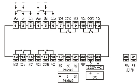 • V + , V - 表示外供傳感器(變送器)電源及極性