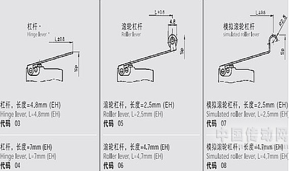 開關(guān)形式:常開,常閉,轉(zhuǎn)換型杠桿,滾輪杠桿,模擬滾輪杠桿
