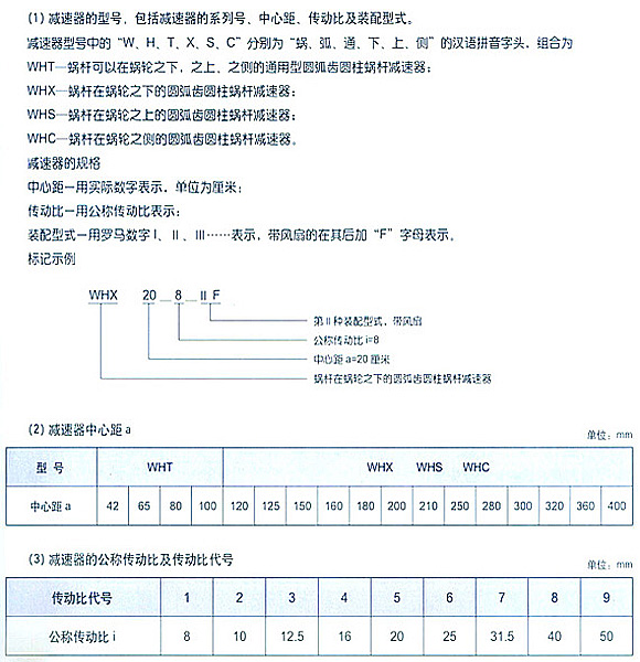 圓弧齒圓柱蝸桿減速器,符合部頒標(biāo)準(zhǔn)JB2318-79,達到標(biāo)準(zhǔn)化、系列化的要求。適用于冶金、礦山、起重、運輸、化工、建筑等各種機械設(shè)備的減速傳動。本系列減速器輸入功率范圍在0.4-163KW之間;輸入扭矩在11-2600kgf·m之間,輸入軸轉(zhuǎn)數(shù)一般不大于1500轉(zhuǎn)/分;高速軸可正反兩向運轉(zhuǎn);工作環(huán)境溫度低于0℃時,起動前潤滑油必須加溫到0℃以上。