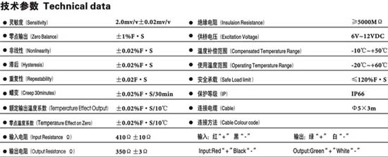 靈敏度:2.0mv/v±0.02mv/v