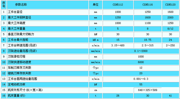 [立式加工中心CXH5116主要規(guī)格與參數(shù)]