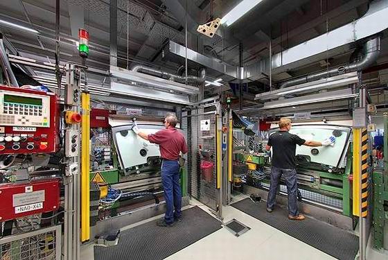 那么SafetyEYE最適合應(yīng)用在哪些場(chǎng)合?通常SafetyEYE適合在那些往往過去需要幾套安全光幕或者安全掃描儀(Scanner)才能達(dá)到安全相關(guān)要求的場(chǎng)合。如下圖,這是一個(gè)汽車擋風(fēng)玻璃涂膠工位。由物流線將待涂膠的擋風(fēng)玻璃運(yùn)輸?shù)酵磕z的兩個(gè)工位,待運(yùn)輸皮帶停止運(yùn)動(dòng)之后,現(xiàn)場(chǎng)工作人員進(jìn)入工作區(qū)域進(jìn)行涂膠。在這樣一個(gè)工作區(qū)域上,如果采用我們傳統(tǒng)的安全光幕和掃描儀來(lái)作為安全保護(hù)設(shè)備,那么怎么使用呢?每個(gè)工位我們需要使用1套安全光幕和1個(gè)安全掃描儀來(lái)進(jìn)行區(qū)域保護(hù),兩個(gè)工位一共需要2套安全光幕和2個(gè)安全掃描儀來(lái)完成。大家可以在下圖中發(fā)現(xiàn)安裝傳統(tǒng)的安全光幕和安全掃描儀前需要額外的規(guī)劃安裝位置并且需要大量的時(shí)間用來(lái)安裝調(diào)整安全光幕以及調(diào)試安全掃描儀。在生產(chǎn)過程中,由于現(xiàn)場(chǎng)工作人員會(huì)頻繁的走動(dòng),所以安裝在現(xiàn)場(chǎng)的安全光幕和安全掃描儀極有可能被現(xiàn)場(chǎng)工作人員撞到。如果安全光幕被撞離了正確位置,那么生產(chǎn)線必定會(huì)由于安全光幕被觸發(fā)而停止。這樣的話又需要重新開始調(diào)整安全光幕,勢(shì)必會(huì)影響整個(gè)工廠的生產(chǎn)效率。