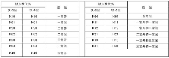 表2電壓等級: DC: 6V/12V/24V/36V/48V/110V/220V/380V AC:110V/220V/380V 表3 觸點(diǎn)數(shù)代碼