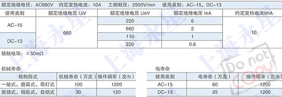 Ui:AC660V Ith:10A AC-15,DC-13 表一:按鈕頭及中座配置類別代碼