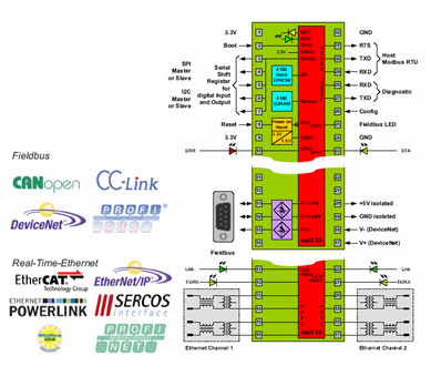 隨著現(xiàn)場總線技術與實時以太網(wǎng)技術日新月益,不斷要求現(xiàn)場輸入輸出設備具有聯(lián)網(wǎng)能力,赫優(yōu)訊適時推出DIL-32模塊,讓您的現(xiàn)場設備緊跟自動化領域發(fā)展潮流。DIL-32模塊基于赫優(yōu)訊自主產(chǎn)權網(wǎng)絡控制器netX50,片上集成網(wǎng)絡通訊所需所有元件,只需3.3V電源供電,具有低功耗與先進技術優(yōu)勢,可以支持Profibus、CANopen、DeviceNet、CC-Link等現(xiàn)場總線協(xié)議,Profinet IO、Ethernet/IP、EtherCAT、Modbus/TCP、POWERLINK、SERCOS III等實時以太網(wǎng)協(xié)議。
