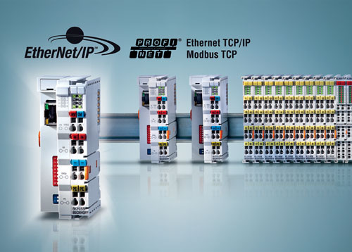 對于在工業(yè)以太網(wǎng)系統(tǒng)中使用,還有可支持 PROFINET(BK9053)和 Ethernet(BK9050)的“緊湊型”總線耦合器。除了 Ethernet TCP/IP 協(xié)議之外,BK9050 還可支持 Modbus TCP 協(xié)議以及根據(jù) EtherCAT 自動化協(xié)議(EAP)進(jìn)行的循環(huán)數(shù)據(jù)交換。