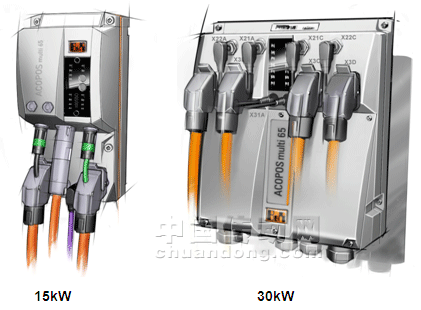 連接盒對于其它的產(chǎn)品是必須的,而對于ACPm65卻并非一定是必須的,可以直接從ACOPOSmulti驅(qū)動(dòng)器直接柜內(nèi)接出提供30kW的功率輸出,然后直接連接到多個(gè)ACOPOSmulti 65單元。